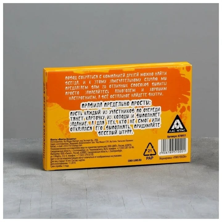 Купить игра для компании "фанты буханты" 20 карт от 100 руб. с доставкой до пункта выдачи в Дюртюлях. Интернет магазин ДекаМаркет. Оплата при получении.